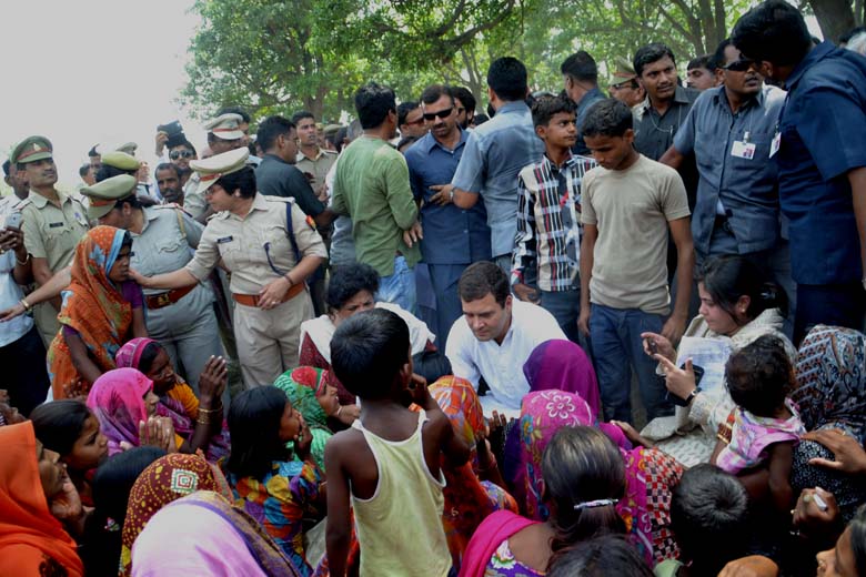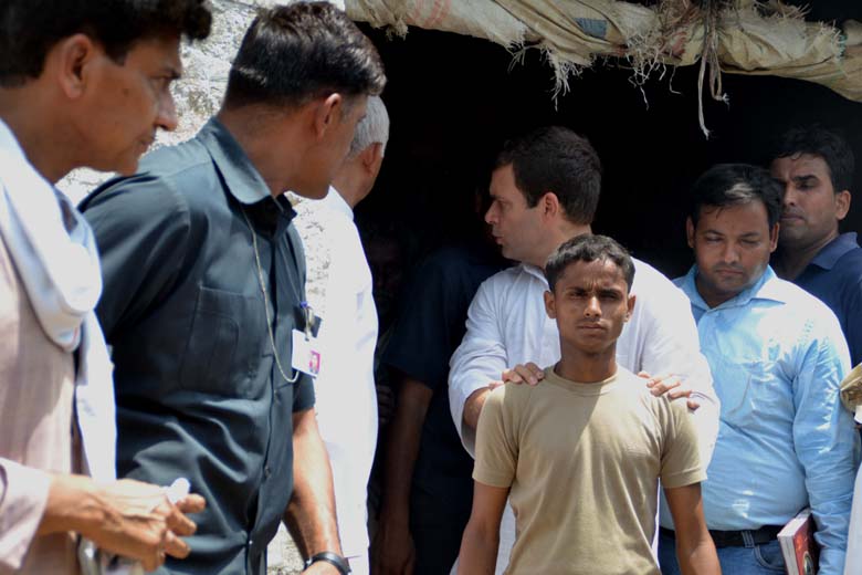 घटना स्थल की ओर जाते राहुल गाँधी