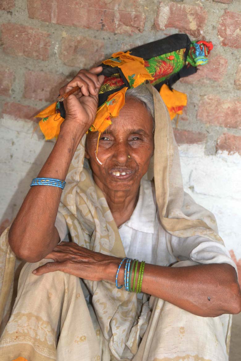 घटना को लेकर रोती और गर्मी से बचने को पंखा झलती एक बुजुर्ग महिला