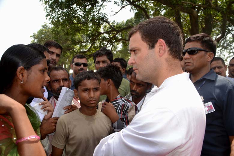 एक युवती से गंभीरता से बात करते राहुल गांधी