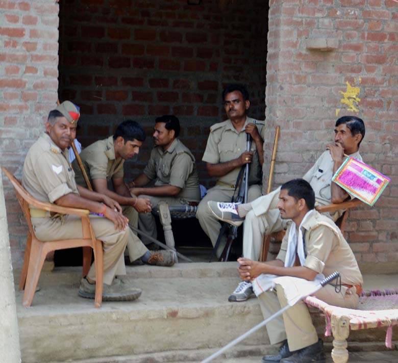 चार-पांच घंटे खड़े होकर ड्यूटी भी नहीं कर सकती यूपी पुलिस, एक बैठक पर आराम फरमाते पुलिस कर्मी