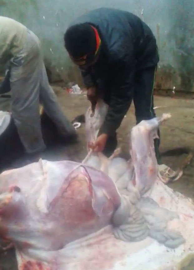 उत्तर प्रदेश के मुख्यमंत्री अखिलेश यादव गाय की हत्या रोकने के लिए बेहद गंभीर हैं, उन्होंने गाय की रक्षा करने के कड़े निर्देश दे रखे हैं, इसके बावजूद गाय की तस्करी और हत्या रुक नहीं पा रही है। ताजा घटना कस्बा सैदपुर की है, जहां एक दर्जन से अधिक लोगों ने मिल कर एक मकान के अंदर दिनदहाड़े गाय की बेरहमी से हत्या कर दी। घटना की जानकारी होने पर लोग आक्रोशित हैं, लेकिन पुलिस कार्रवाई करती नजर नहीं आ रही।