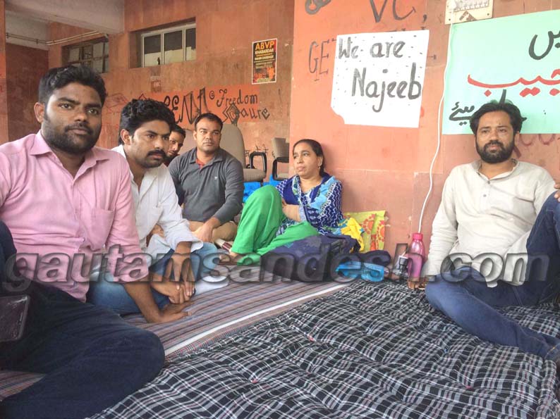 दिल्ली स्थित जेएनयू से लापता छात्र नजीब अहमद की बरामदगी को पीड़ित परिजनों के साथ बदायूं के लोग खड़े हो गये हैं। जेएनयू प्रांगण में चले रहे धरने पर पीड़ित परिजनों के साथ बदायूं से गये युवा भी बैठे और नजीब को शीघ्र बरामद कराने की मांग दिल्ली पुलिस से की।