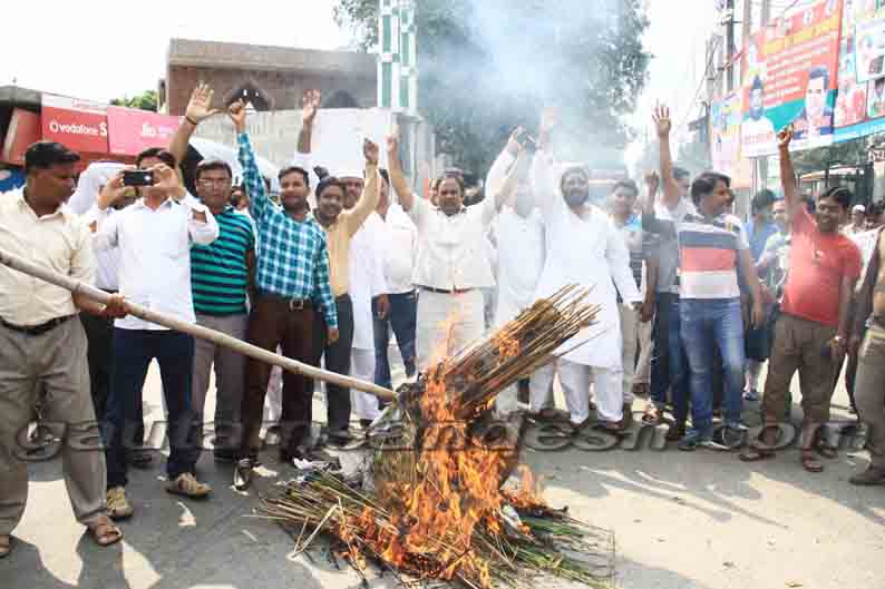 इससे पहले समाजवादी युवजन सभा के जिलाध्यक्ष वसीम अहमद अंसारी के नेतृत्व में तमाम लोगों ने कचहरी चौराहे पर आबिद रजा मुर्दाबाद… के जोरदार नारे लगाते हुए पुतला फूंका और जूते-चप्पलों से पुतले की मार भी लगाई। इस अवसर पर मुलायम सिंह यूथ बिग्रेड के जिलाध्यक्ष स्वाले चौधरी और प्रभात अग्रवाल सहित तमाम लोग मौजूद रहे। यहाँ यह भी बता दें कि वसीम ने आबिद रजा का पुतला फूंकने की घोषणा सुबह ही कर दी थी, जिससे पुलिस-प्रशासन के अफसरों में अफरा-तफरी मची रही। अफसरों ने वसीम पर पुतला न फूंकने का दबाव भी बनाने का प्रयास किया, लेकिन आक्रोशित वसीम नहीं माने और उन्होंने न सिर्फ पुतला फूँका, बल्कि आबिद रजा के चेहरे से आदर्शवाद का फर्जी मुखौटा ही नोंच के फेंक दिया।
