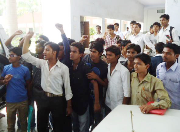 • अपने ही कालेज के नाबालिग छात्रों से अपने नारे लगबाये