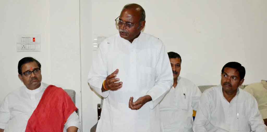 पूर्व विधायक रामसेवक सिंह पटेल के आवास पर भाजपा में शामिल होते समय भाषण देते पूर्व विधायक दयासिन्धु शंखधार।