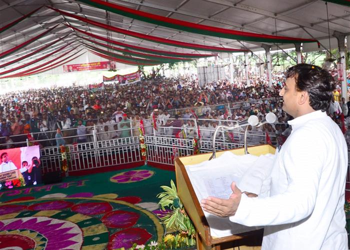 इस अवसर पर श्री यादव ने जनपद मुजफ्फरनगर के विकास से सम्बन्धित लगभग एक हजार करोड़ रुपये की योजनाओं का लोकार्पण एवं शिलान्यास किया। उन्होंने जिन प्रमुख योजनाओं का लोकार्पण किया उनमें हिण्डन नदी/ग्राम बुड्ढा खेड़ा एवं कसौली के बीच निर्मित सेतु, ढिढावली व सावटू के बीच हिण्डन नदी पर निर्मित पुल, ग्राम मोलाहेड़ी के निकट काली नदी पर निर्मित सेतु, मुजफ्फरनगर थाना भवन मार्ग पर हिण्डन नदी पर नवनिर्मित सेतु, बहादुरपुर, कल्याणपुर तथा कवाल में निर्मित राजकीय इण्टर काॅलेज, चर्थावल में निर्मित माॅडल स्कूल इत्यादि शामिल हैं। जिन परियोजना का शिलान्यास किया गया, उनमें मुजफ्फरनगर-सहारनपुर वाया देवबन्द मार्ग (एस. एच.- 59) की 4-लेनिंग विद पेव्ड सोल्डर, सरकुलर रोड के सुधार हेतु बी. एम. एवं एस. डी. बी. सी. का कार्य, बघरा में सामुदायिक स्वास्थ्य केन्द्र का निर्माण, खतौली में ट्राॅमा सेण्टर का निर्माण, दूधली में प्राथमिक स्वास्थ्य केन्द्र का निर्माण, जिला महिला चिकित्सालय में 100 शैय्या मैटरनिटी विंग के भवन का निर्माण, ग्राम खाईखेड़ा में पेयजल योजना की स्थापना इत्यादि शामिल हैं। कार्यक्रम के दौरान मुख्यमंत्री ने समाजवादी पेंशन योजना के अन्तर्गत 7000 लाभार्थियों, राष्ट्रीय पारिवारिक लाभ योजना में 270 लाभार्थियों, लोहिया ग्रामीण आवास योजना में 430 लाभार्थियों, निःशुल्क लैपटाॅप वितरण योजना में 462 लाभार्थियों, साइकिल वितरण योजना में 1500 श्रमिकों को, मृत्यु एवं अन्त्येष्टि सहायता योजना के तहत 6 लाभार्थियों को, किसान दुर्घटना बीमा योजना में 76 किसानों को, सोलर फोटोवोल्टेइक इरीगेशन पम्प योजना में 26 किसानों को, निराक्षित महिला भरण-पोषण योजना में 650 महिलाओं को, कामधेनु योजना में 16 लाभार्थिंयों, कुक्कुट विकास योजना में 2 लाभार्थियों तथा कौशल विकास मिशन योजना के अन्तर्गत 777 लाभार्थियों को नियुक्ति-पत्र वितरित कर लाभान्वित किया। कार्यक्रम में प्रदेश के श्रम मंत्री शाहिद मन्जूर, पिछड़ा वर्ग कल्याण मंत्री साहब सिंह सैनी, खेल एवं युवा कल्याण राज्य मंत्री (स्वतंत्र प्रभार) राम सकल गुर्जर सहित विधायकगण तथा जिला-प्रशासन के वरिष्ठ अधिकारी मौजूद थे।