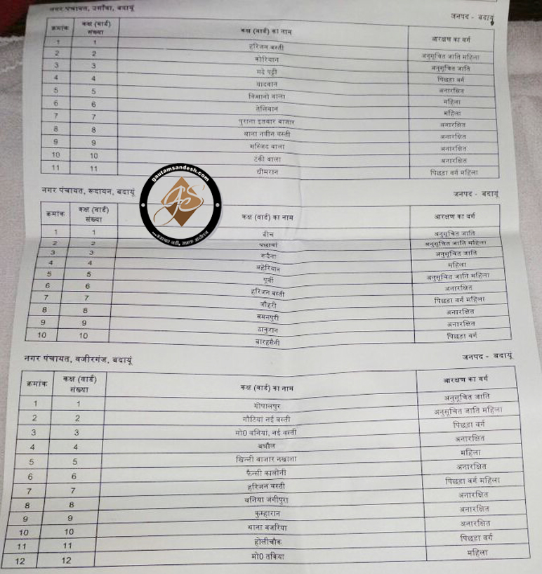 पढ़ें: बदायूं नगर पालिका परिषद में वार्डों के आरक्षण की सूची फाइनल