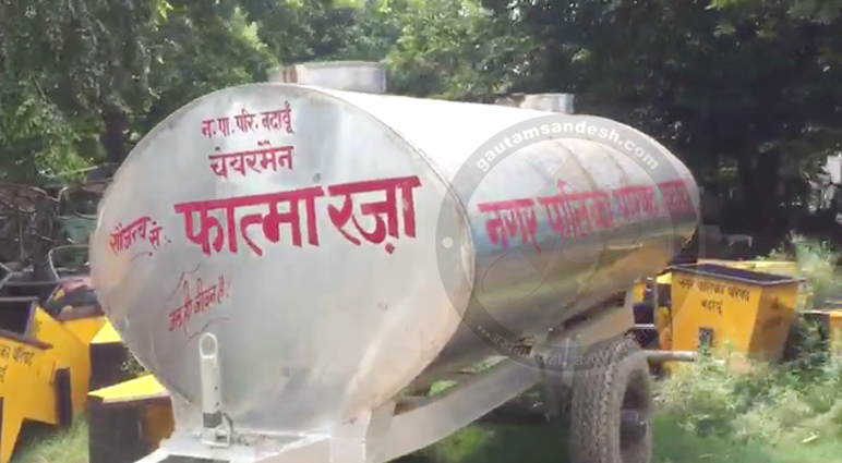 बदायूं नगर पालिका परिषद में करोड़ों रुपयों का दुरूपयोग किया गया है। चौधरी सराय निवासी सौरव साहू पुत्र राजाराम साहू ने खुलासा किया है कि वाटर वर्क्स रोड के पास स्थित ग्राउंड में खुले आसमान के नीचे करोड़ों रुपयों का कीमती सामान गल रहा है। आरोप है कि करोड़ों रुपयों के जेसीबी, हाथ गाड़ी, वाटर टैंक, रिक्शे और कूड़ेदान पड़े हैं, जो खरीदने के बाद यहाँ डाल दिए गये हैं, इनमें से अधिकांश उपकरणों का एक बार भी उपयोग नहीं किया गया है। हालाँकि उपकरणों पर पालिकाध्यक्ष फात्मा रजा का नाम लिखाने में तत्परता दिखाई गई है, जो दूर से ही चमक जाता है।