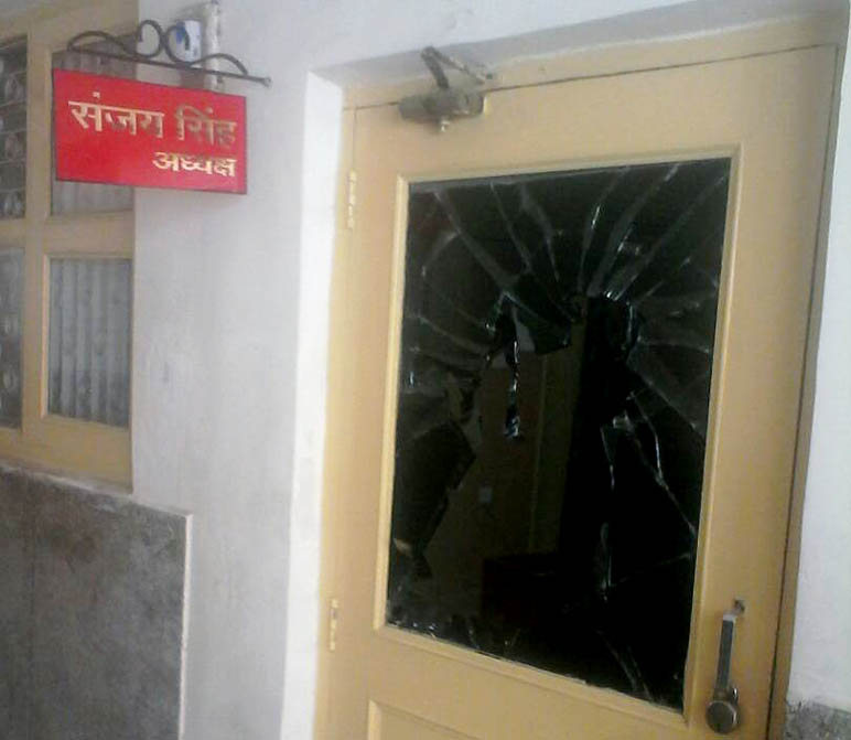 बवालियों का गुस्सा इतने पर ही शांत नहीं हुआ। बवालियों ने जिला पंचायत अध्यक्ष संजय सिंह के कार्यालय पर भी धावा बोल दिया। संजय सिंह कुछ समझ पाते, तब तक उनकी टेबिल और कमरे में मौजूद कुर्सियों को कबाड़ में बदल दिया। चूँकि संजय सिंह पूरी तरह अनिभिज्ञ थे, सो उन्होंने स्वयं को एक अन्य कमरे में बंद कर लिया, जिससे वे बच गये। बवालियों के कहर के सामने कोई नहीं टिका। बवाली काफी देर तक हंगामा और तोड़-फोड़ करते रहे, जिससे जिला पंचायत परिसर में अफरा-तफरी का माहौल बना रहा। यहाँ बता दें कि संजय सिंह बेहद लोकप्रिय हैं और राजनैतिक समीकरण बदल जाने के बावजूद बहुमत से अधिक सदस्य उनके साथ हैं, इसी को लेकर भाजपा समर्थित सदस्य का दबंग पति भड़का हुआ था। अब बवाली को भाजपा से निकाले जाने के बाद ही भाजपा की स्थिति सुधर पायेगी, क्योंकि इस घटना को लेकर भाजपा की जिले भर में बड़े स्तर पर फजीहत हो रही है।