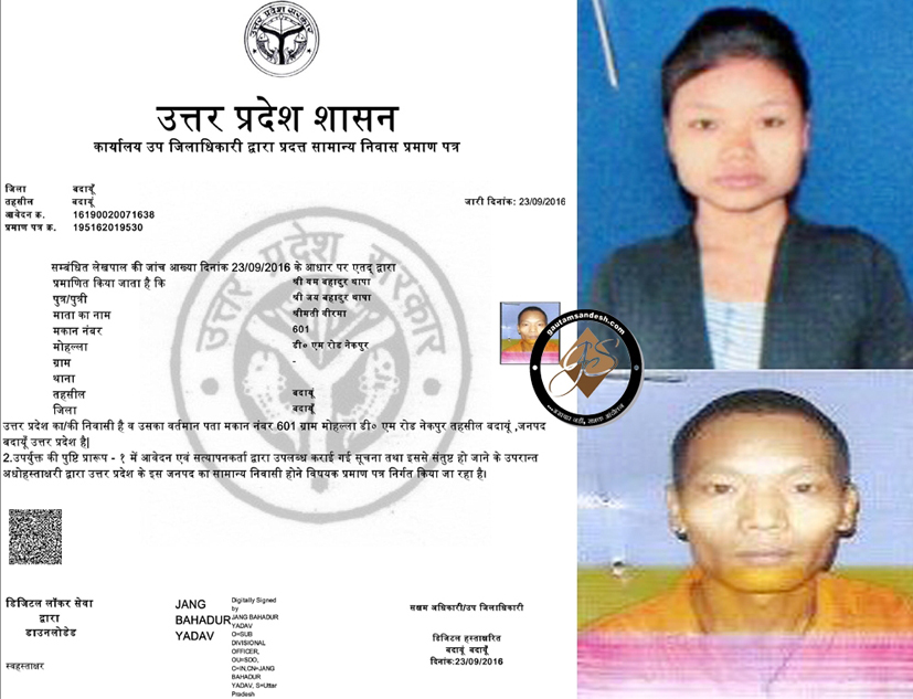 गौतम संदेश के संज्ञान में आया है कि बदायूं शहर में बंगाल के अलावा नेपाल के भी कई नागरिक रह रहे हैं, इन्होंने भी प्रशासनिक भ्रष्टाचार के सहारे कई तरह की आईडी बनवाने में सफलता प्राप्त कर ली है। गौतम संदेश को नेपाली नागरिक यम बहादुर थापा का मूल निवास प्रमाण पत्र मिला है, जिसे उप-जिलाधिकारी जंग बहादुर यादव द्वारा जारी किया गया है, इसने आधार कार्ड भी बनवा रखा है, साथ ही इसकी बेटी गरिमा थापा के नाम पर भी आधार कार्ड जारी हो चुका है, जिसमें डीएम रोड मोहल्ला नेकपुर का पता दर्शाया गया है, यह प्रकरण हाल-फिलहाल इसलिए बेहद गंभीर माना जा रहा है कि देश की सीमा में म्यांमार से भागे रोहिंग्या आतंकियों का बड़ा गिरोह घुस आया है, जो नेपाली और बंगाली नागरिकों की तरह ही आसानी से आधार कार्ड बनवा सकता है और फिर कहीं भी रहते हुए गंभीर वारदातों को अंजाम दे सकता है। विदेशी नागरिकों का रहना और आईडी बनवा लेना स्थानीय खुफिया विभाग और पुलिस की असफलता का ही दुष्परिणाम है, इसलिए उच्च स्तरीय जांच एंजेसियों को तत्काल कार्रवाई करनी होगी, वरना संदिग्ध विदेशी कभी भी भूमिगत हो सकते हैं।