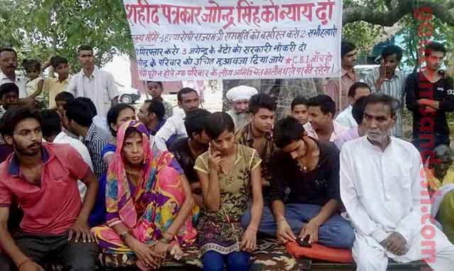 उत्तर प्रदेश सरकार की मनमानी से तंग आकर शाहजहांपुर के दिवंगत पत्रकार जगेन्द्र सिंह के आश्रित व ग्रामीण नामजद राज्यमंत्री राममूर्ति सिंह वर्मा को मंत्रिमंडल से निकालने, सभी आरोपियों की गिरफ्तारी और निष्पक्ष जांच की मांग को लेकर कस्बा खुटार के मोहल्ला कोट में अनिश्चितकालीन धरने पर बैठ गये हैं।