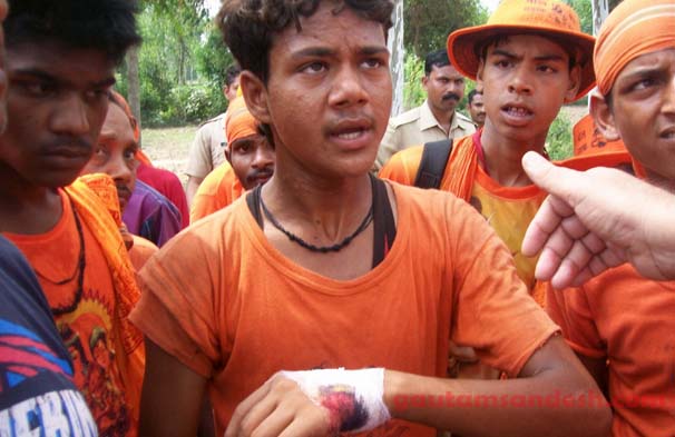 घटना बदायूं जिले के बिनावर थाना क्षेत्र की है। बताया जाता है कि गाँव रसूलपुर से गुजरते समय बरेली के कांवरियों को किसी ने ईंट का टुकड़ा फेंक कर मार दिया, इस पर कांवरियों व ग्रामीणों में भिड़ंत हो गई। बताया जाता है कि ग्रामीणों ने कांवरियों को दौड़ा-दौड़ा कर पीटा एवं किसी ने धारदार हथियार से भी हमला किया, जिससे कई कांवरियों को चोटें आई हैं।