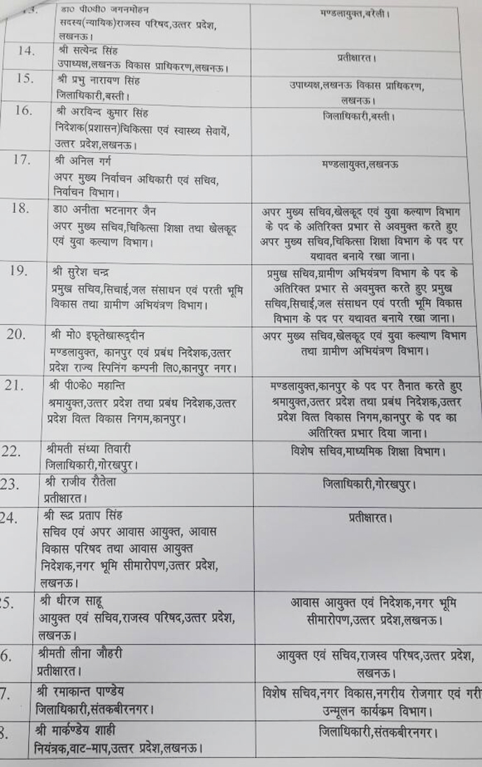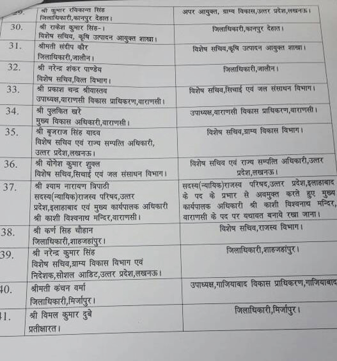 उत्तर प्रदेश शासन ने 41 आईएएस और पीसीएस अफसरों के कार्यभार बदल दिए हैं। तेजतर्रार राजीव रौतेला को गोरखपुर का डीएम बनाया गया है, वहीं पत्रकार से अभद्रता करने वाले शाहजहाँपुर के डीएम कर्ण सिंह चौहान का भी विकेट गिर गया है। तबादलों के चलते आईएएस अफसरों में हड़कंप मच गया है।