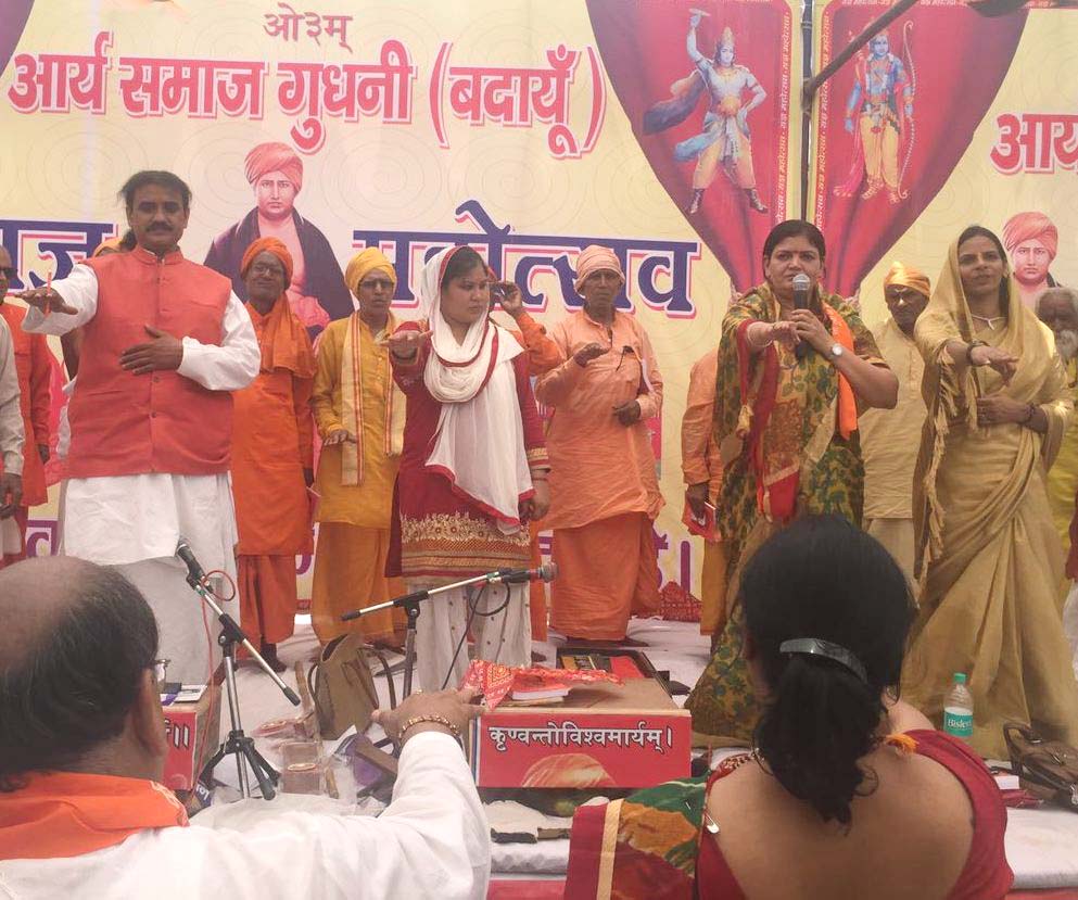 बदायूं जिले के बिल्सी तहसील क्षेत्र में स्थित गाँव गुधनी में चल रहे महायज्ञ में आज समापन के अवसर पर बड़ी संख्या में लोगों ने भाग लिया। यज्ञ में पवित्र घृत साकल्य के साथ लोगों ने अपनी बुराइयों को छोड़ने का संकल्प किया। कार्यक्रम की मुख्य अतिथि पूर्व जिला पंचायत अध्यक्ष पूनम यादव रहीं।